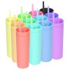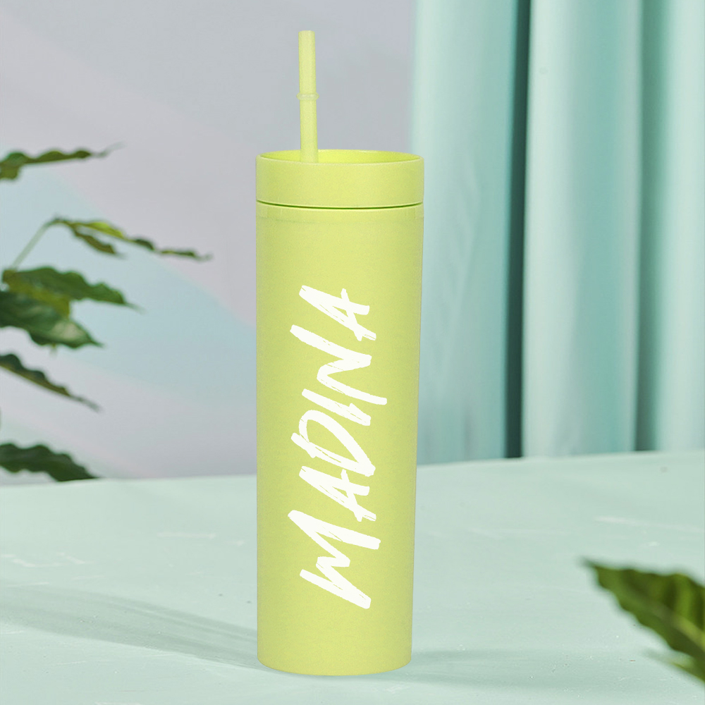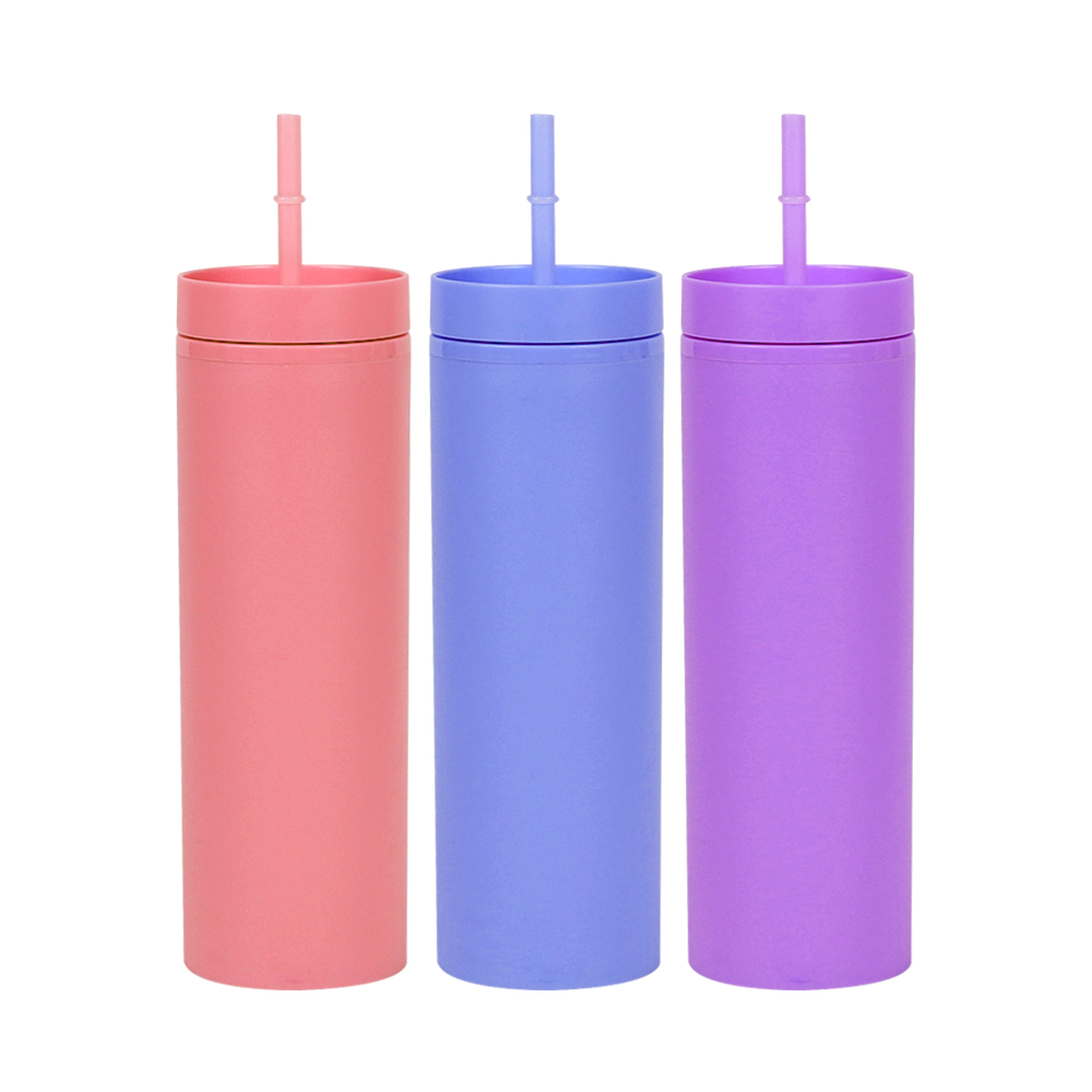 16oz double-layer plastic cup with high appearance and large capacity straight tube cold drink cup with straw