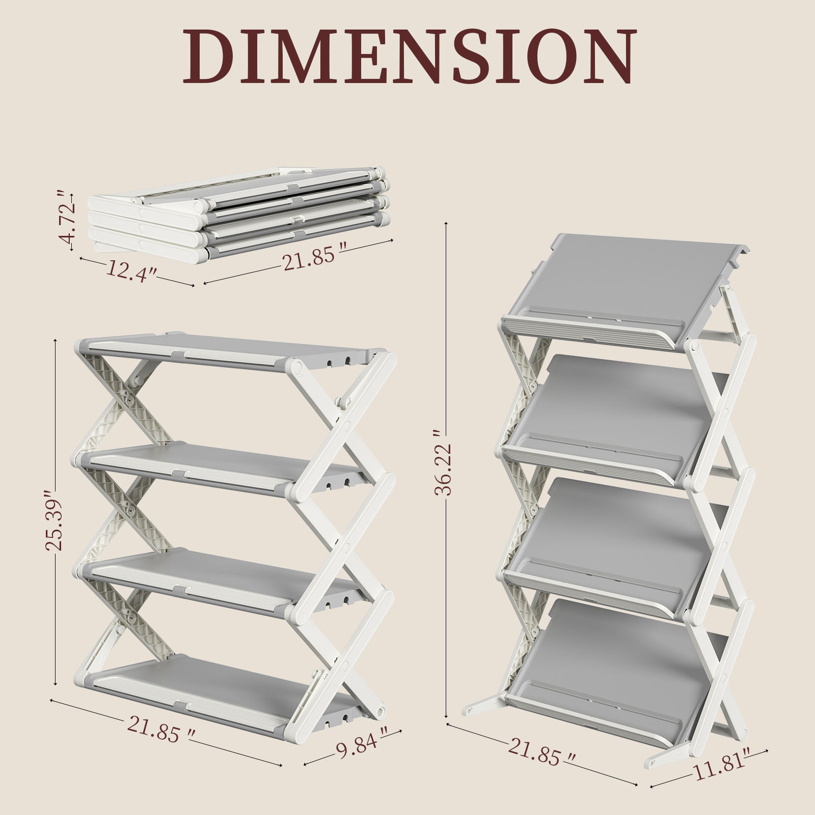 / 2-Mode Folded Shoe Rack 4 Tier Plastic Shoe Shelf Free Standing Shoe Organizer for Small Spaces