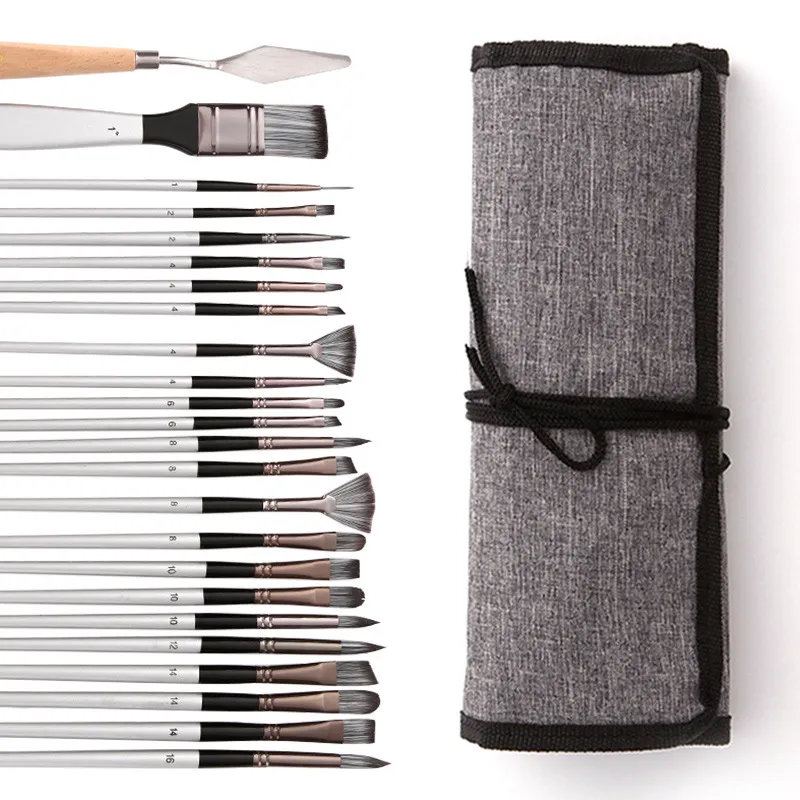 24 brushes set cross-border best-selling canvas pen curtain oil brush nylon gouache watercolor brush quantity