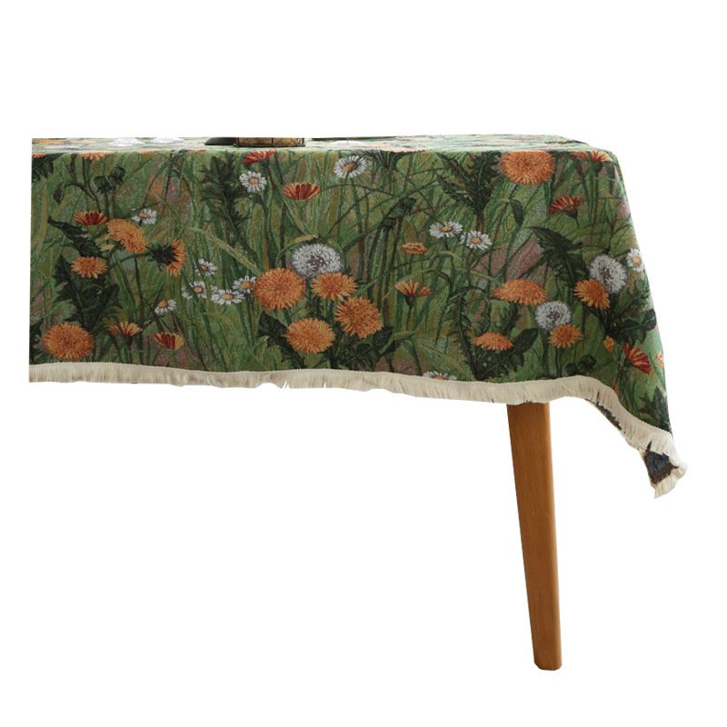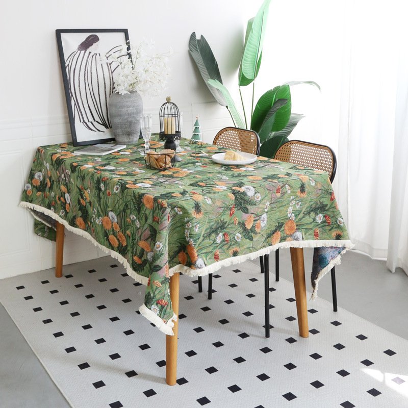 American Fresh Rectangular Tablecloth Jacquard Retro Green Fabric Tablecloth