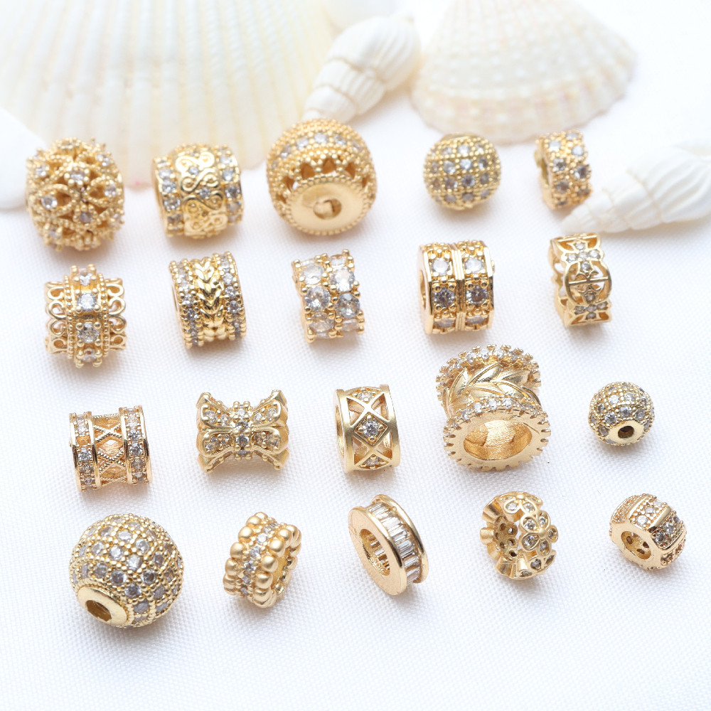 / Copper-coated gold color-preserving micro-paved zircon wheel flat spacer beads handmade diy bracelet bracelet accessories necklace jewelry material