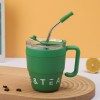 Handle straw cup stainless steel coffee cup insulation cup men’s and women’s water cup office mug with lid