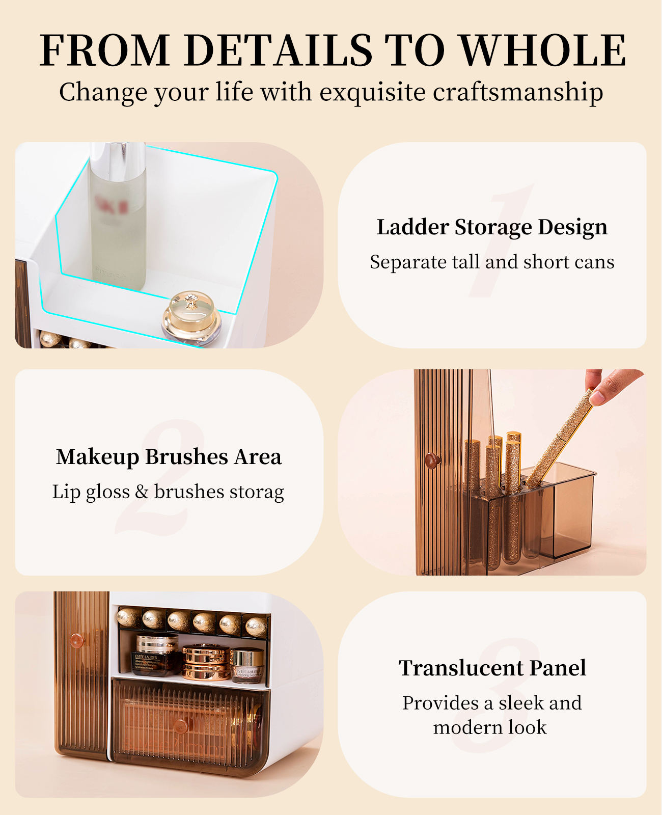 / Makeup Organizer Storage Cosmetic Display Case With 2 Clear Drawers Skincare Organizer for Vanity Lipsticks
