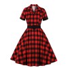 / Retro Hepburn Style Original Women’s British Plaid Swing Dress