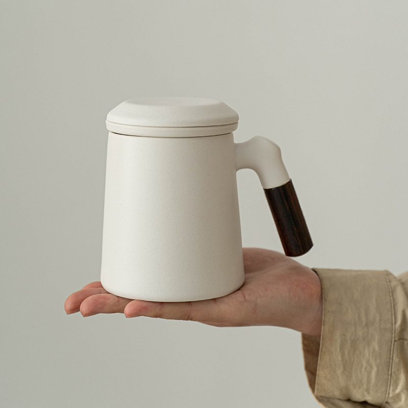 Ceramic tea cup three-piece set with lid filter tea water separation tea cup office personal water cup quantity
