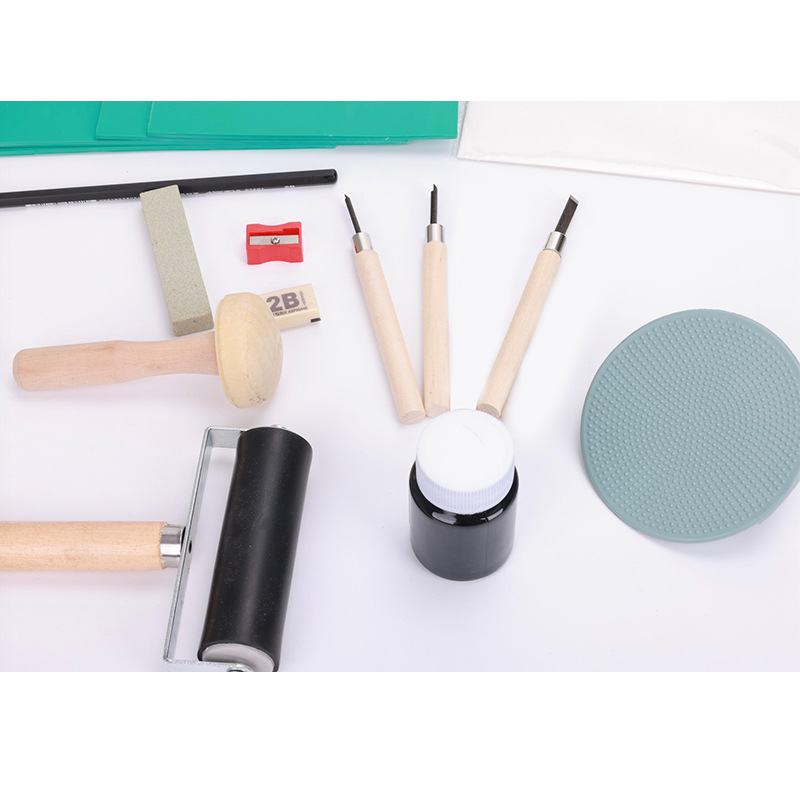 / Tool set for printmaking, printmaking materials, wood board, ink, carving knife, board painting glue board