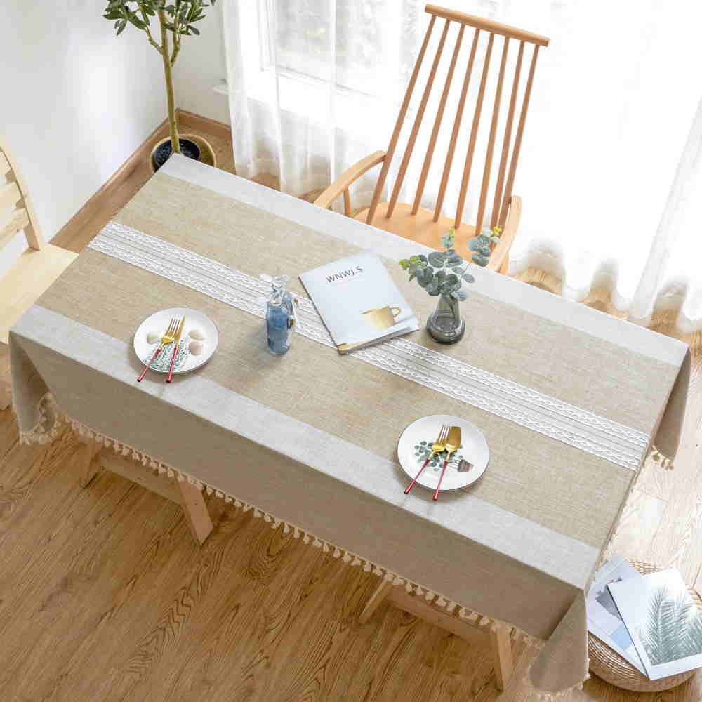 Wholesale Christmas Jacquard solid color tassel openwork tablecloth table mats cotton linen Table Cloth